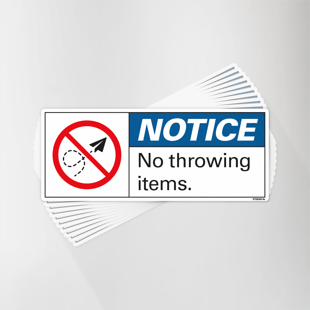 Notice: No Throwing Items Decal Pack – ANSI Safety Standard Decal