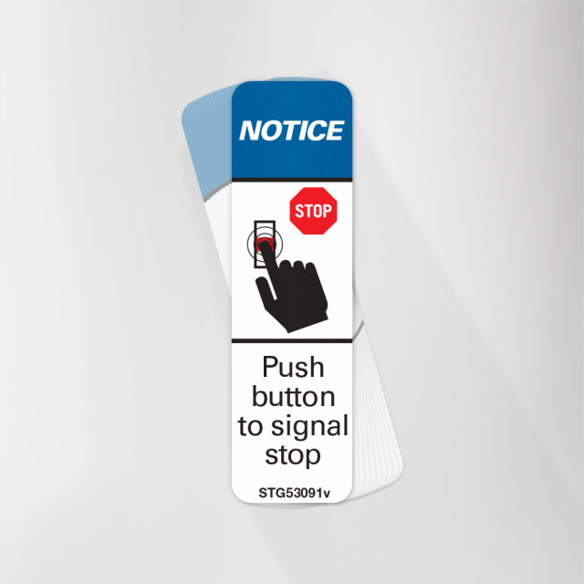 Notice: Push Button To Signal Stop – ANSI Safety Standard Decal